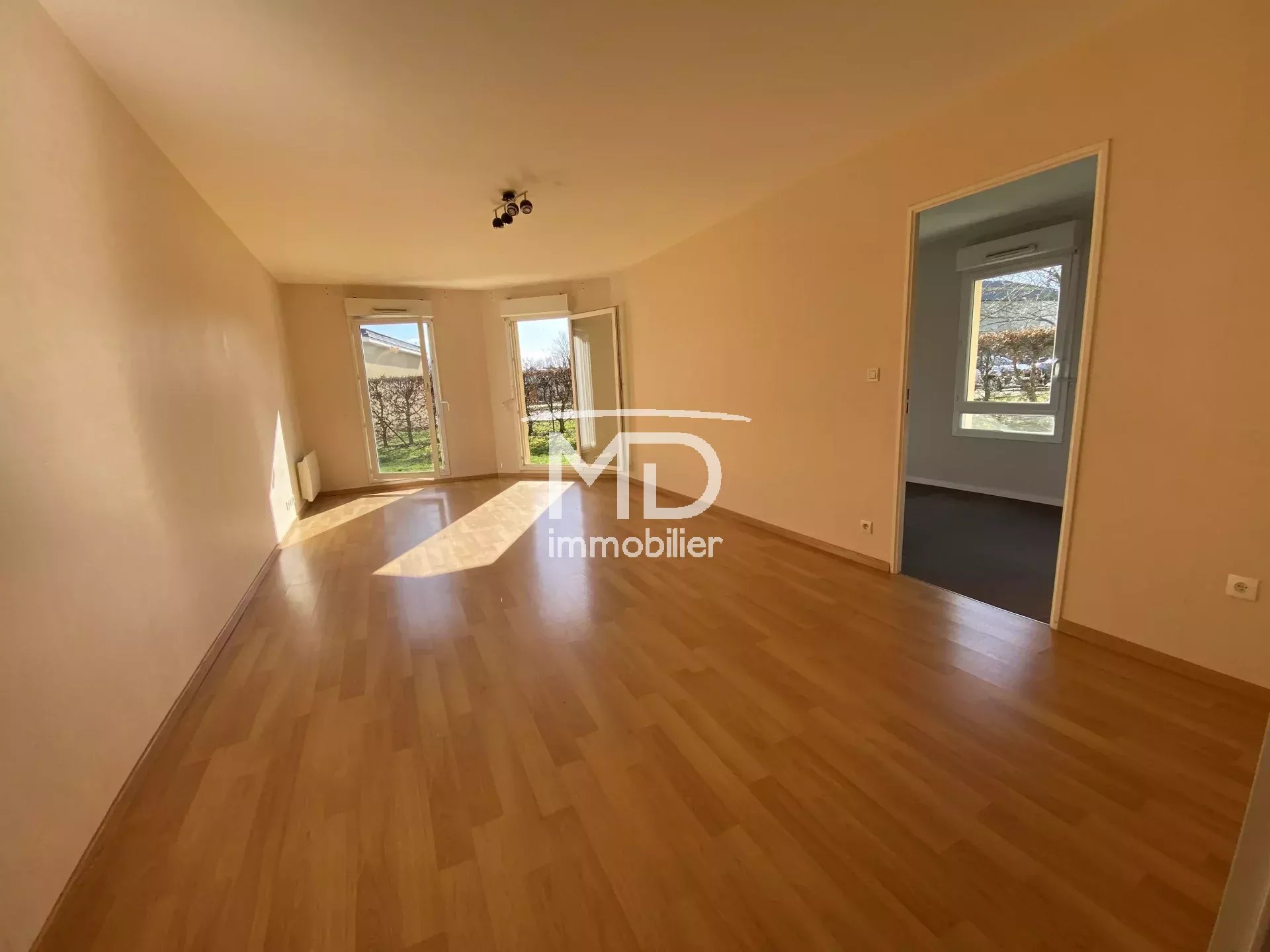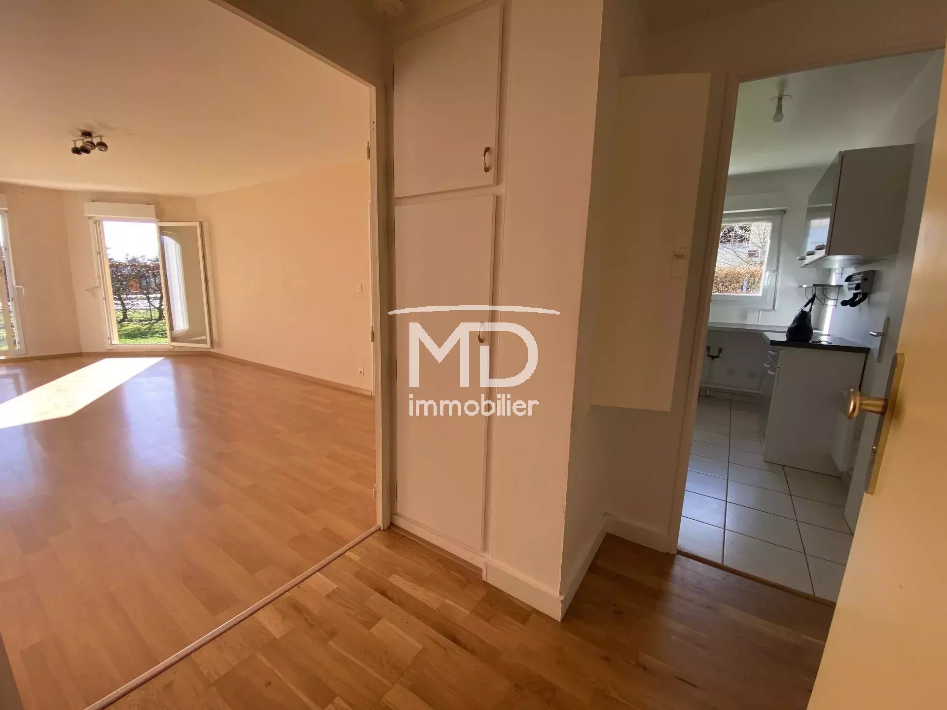 Il comprend : entrée avec placard, dégagement, cuisine aménagée, séjour avec portes-fenêtres donnant sur jardin privatif exposé Sud-Ouest, 2 chambres avec placards, salle de bains, WC séparé.